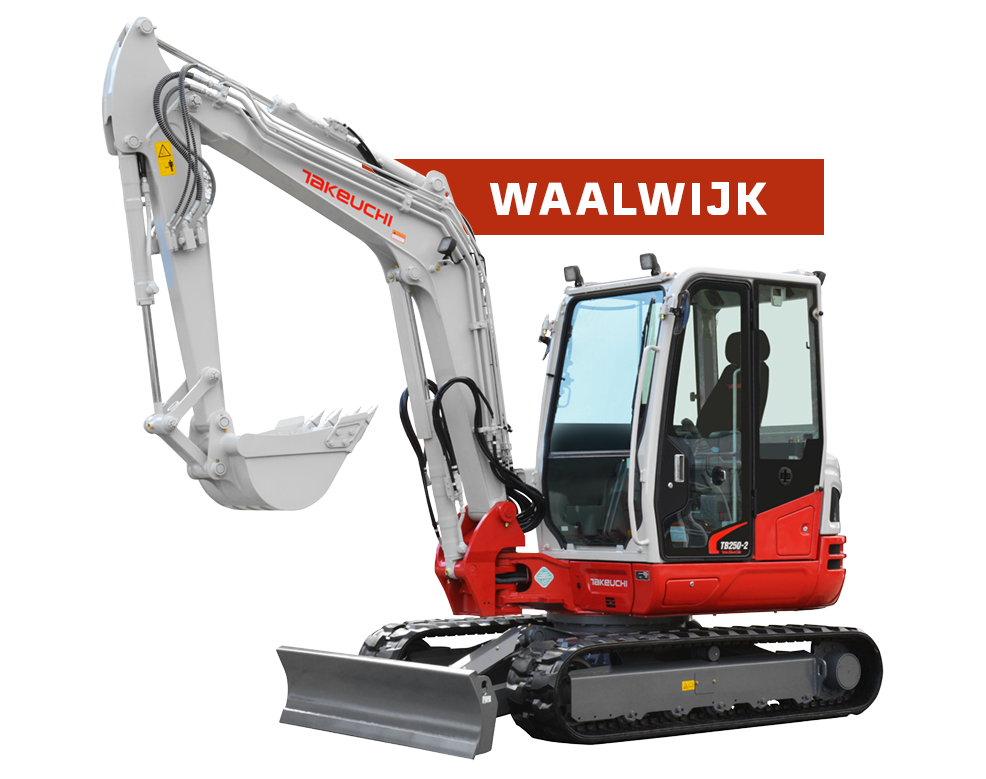 Een ongebruikte óf gebruikte graafmachine kunt u kopen bij Gehlmax in de buurt van Waalwijk! Uit één t/m vijftien ton bestaat onze voorraad. Door dit brede aanbod is voor elk karwei een graafmachine verkrijgbaar! Het Japanse merk Takeuchi van onze graafmachines maakt al 50 jaar hoogwaardige en goede graafmachines. Bij Gehlmax kunt u terecht als u eraan denkt een graafmachine te kopen in de omgeving van Waalwijk! Ons team staat voor u klaar om u hiermee verder te helpen.